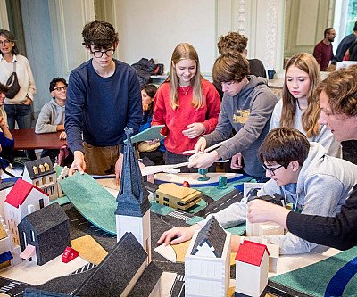 Tijdens de workshop BELville bouwen leerlingen samen aan een toekomstbestendige stad. Aan de hand van dilemma’s maken ze belangrijke keuzes over stadsontwikkeling. Hun beslissingen hebben direct invloed op een fysieke maquette van 4 bij 3 meter, die zo stap voor stap mee verandert en de groei van hun stad zichtbaar maakt.